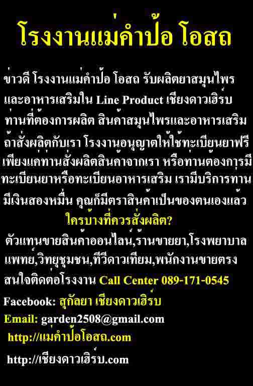 ติดต่อสอบถามเพิ่มเติมที่ฝ่ายขาย โรงงานผลิตยาสมุนไพรพลูคาว